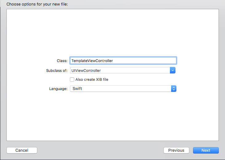 You now have a pretty advanced Xcode template that can generate several files with several variations of your own custom boilerplate. It even lets you choose if you want to generate a XIB file or not. That’s pretty neat!
